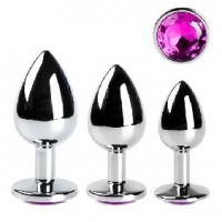 Metal Anal Plug 3 Pc Set w/Purple Jewels